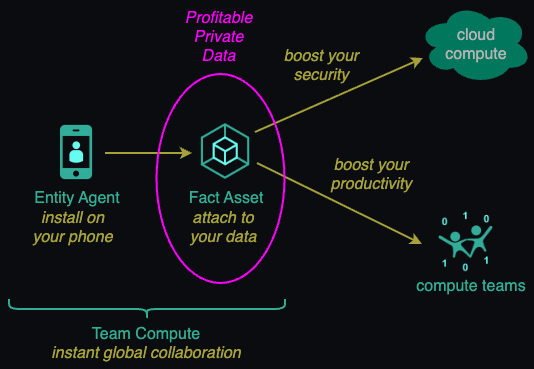 Fact Asset replaces Cloud COmpute exploitation with inserts a fact based verification and monetisation layer into the data stack. lets you earn income from your data safely can manage both Cloud and Team data for you.