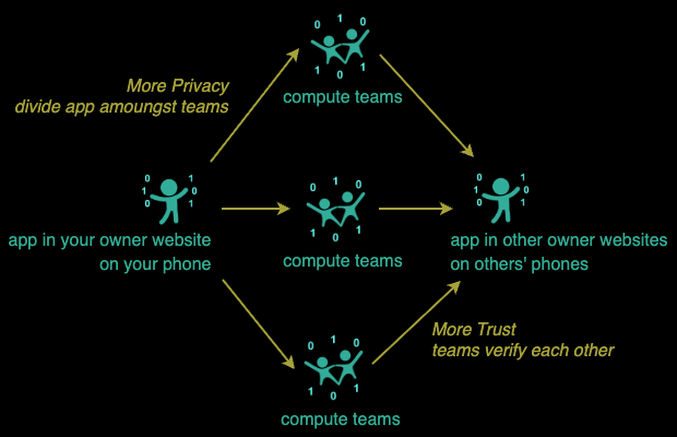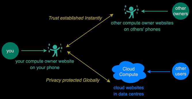 Team Compute solves the Privacy vs Trust Dilemma by transferring the responsibility for Privacy and Trust from monopolistic Cloud Compute platforms to the Compute Owner Websites on every phone.