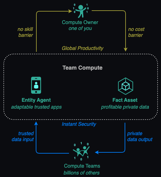 Team Compute works by giving individuals control of community assets through the exchange of facts